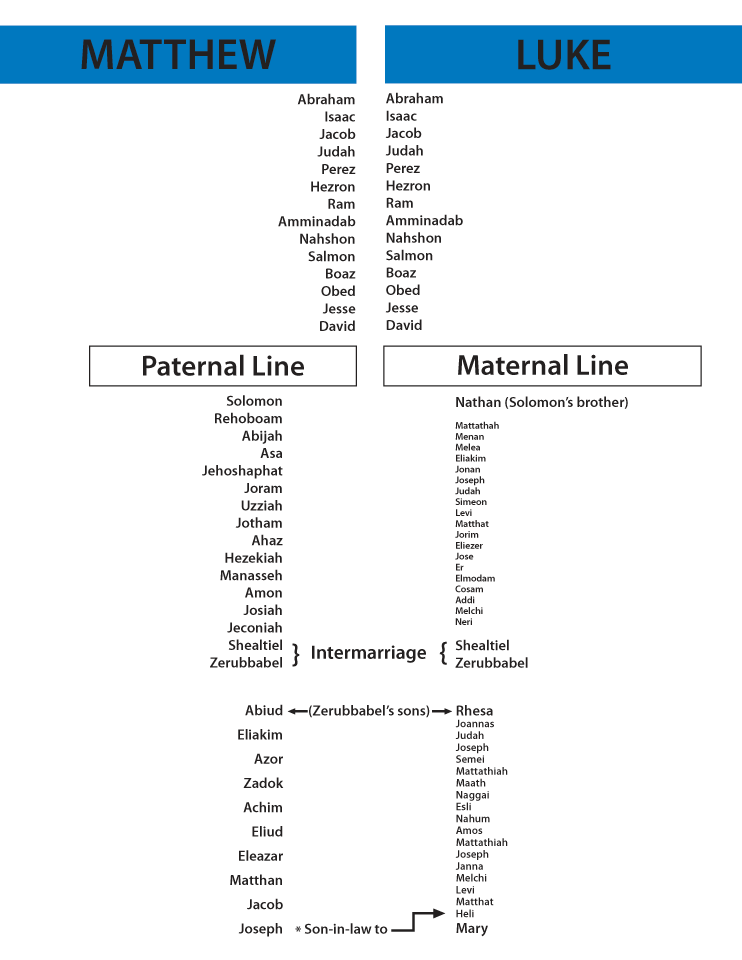 Just read the New Testament to discover what makes no sense. For instance, the book of Matthew lists the genealogy of Joseph, to show that Jesus was in the direct line of King David, yet it also tells us that Joseph. was not the father of Jesus. What? how about Luke who corrects that mistake by listing the genealogy of Mary. Since when did people in the ancient middle east list their mother’s ancestors as proof of anything? Sorry, but never. Genealogy was patriarchal. Wait, you say, Luke’s genealogy is patriarchal. It’s confusing, I admit. I found a table that I think helps explain it: